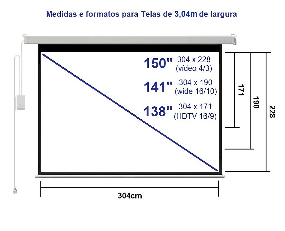 Tamanho : 150 polegadas 3,04 x 2,28m